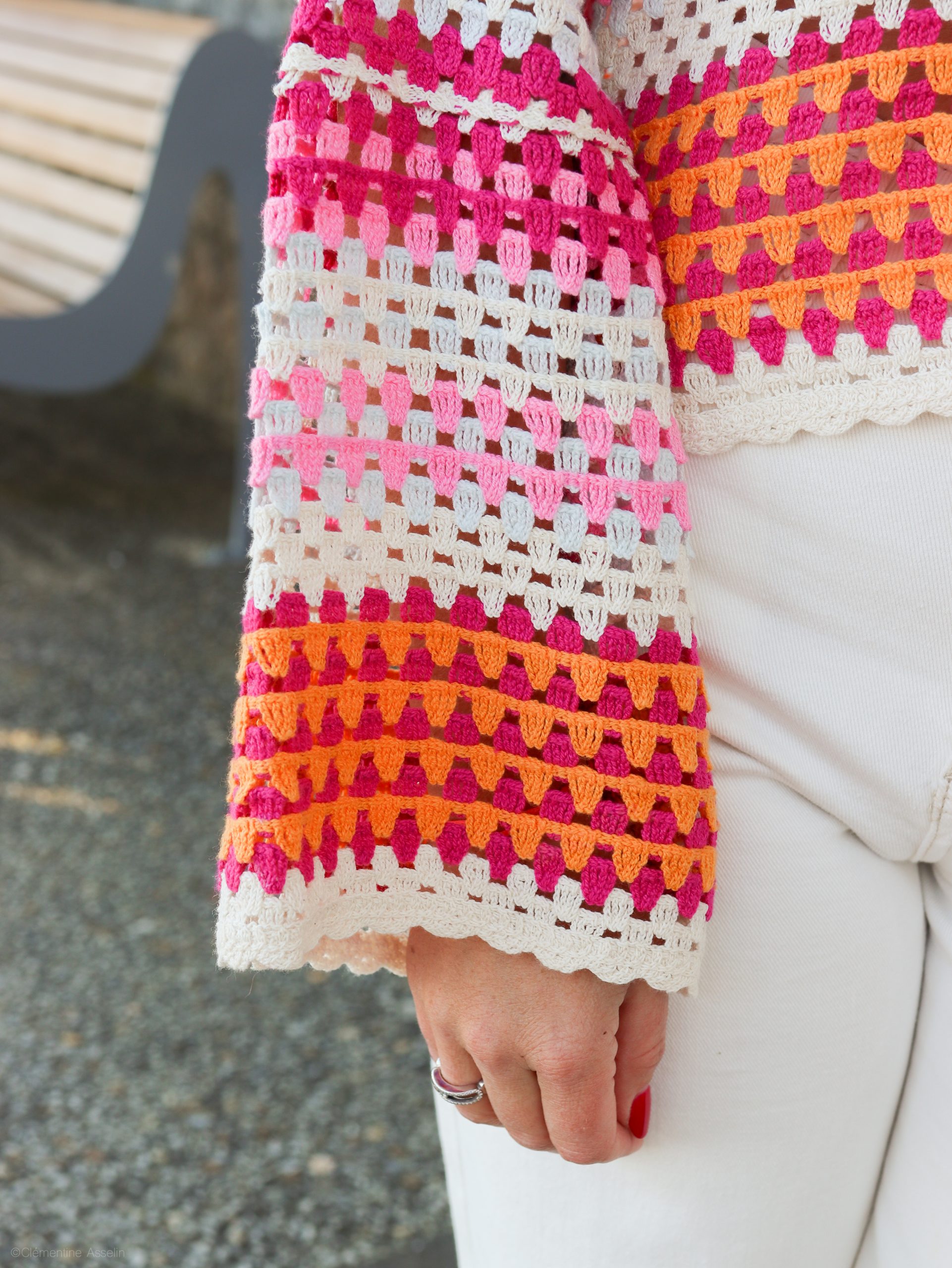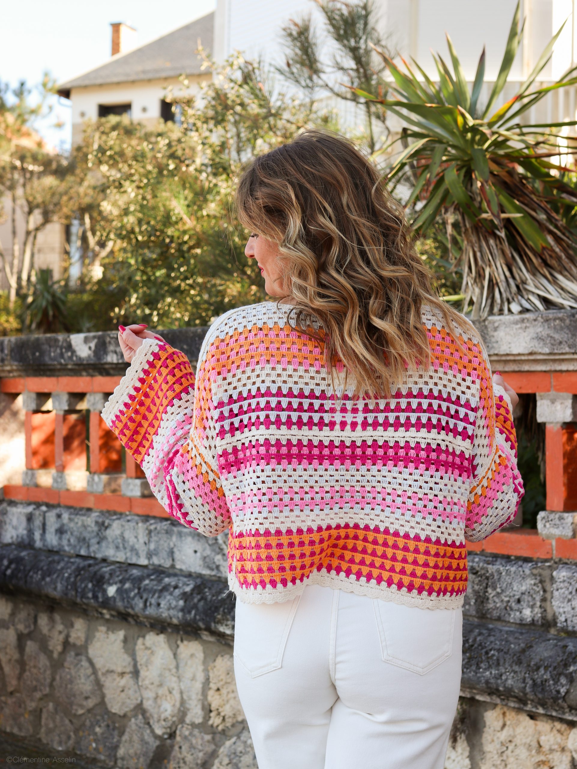 Le top en crochet au charme bohème. Avec ses mailles ajourées et ses manches longues, ce top en crochet apporte une touche bohème et féminine à ton dressing. Léger et agréable à porter, il laisse subtilement entrevoir la peau pour un effet délicat et tendance. Parfait pour créer des looks à la fois naturels et stylés.