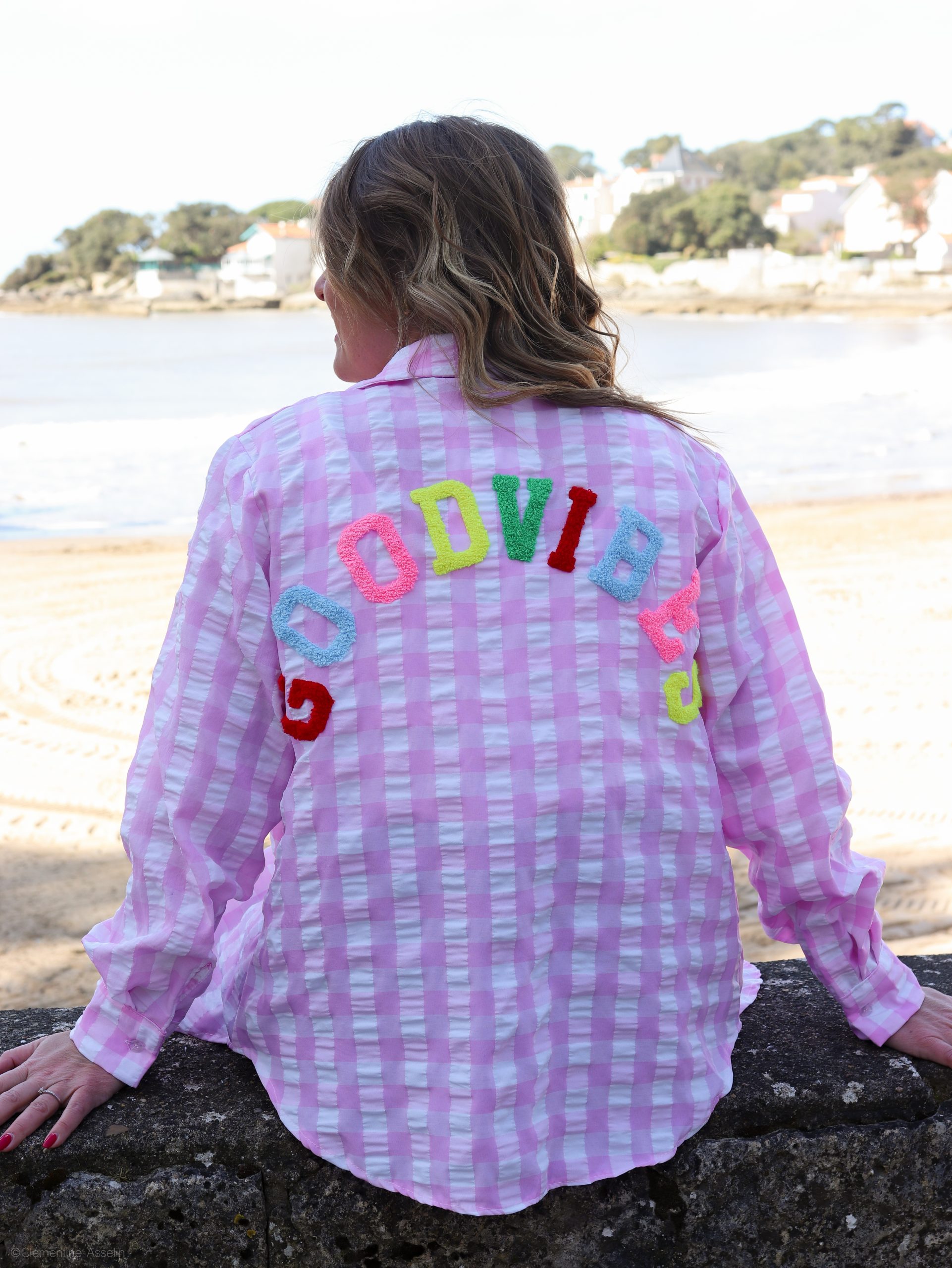 La chemise qui respire la bonne humeur ! Avec son imprimé vichy rose et son inscription good vibes au dos, cette chemise apporte instantanément de la fraîcheur à ton look. Légère et agréable à porter, elle se distingue par son style à la fois féminin et décontracté. Parfaite pour illuminer tes tenues du quotidien avec une touche de peps et de douceur.