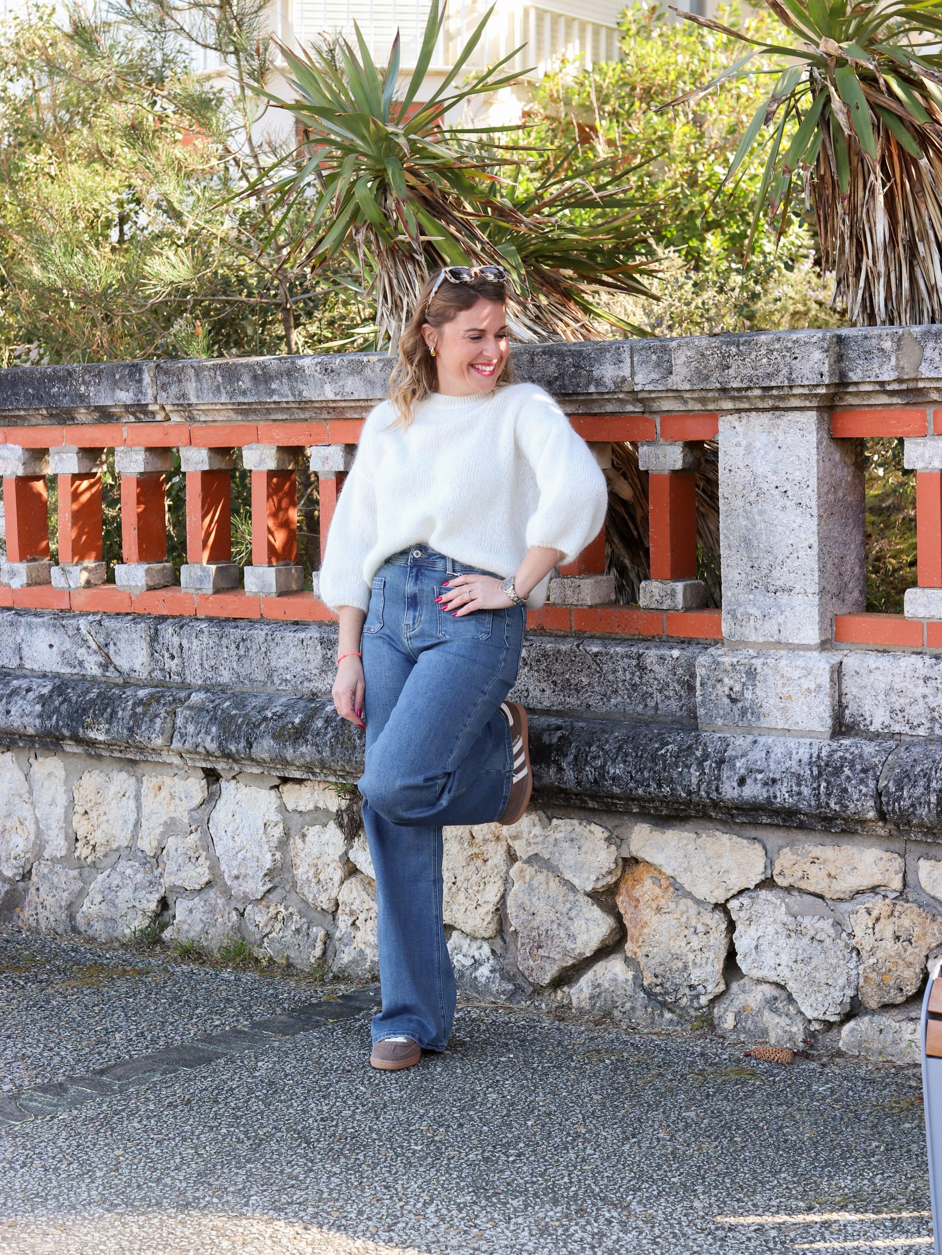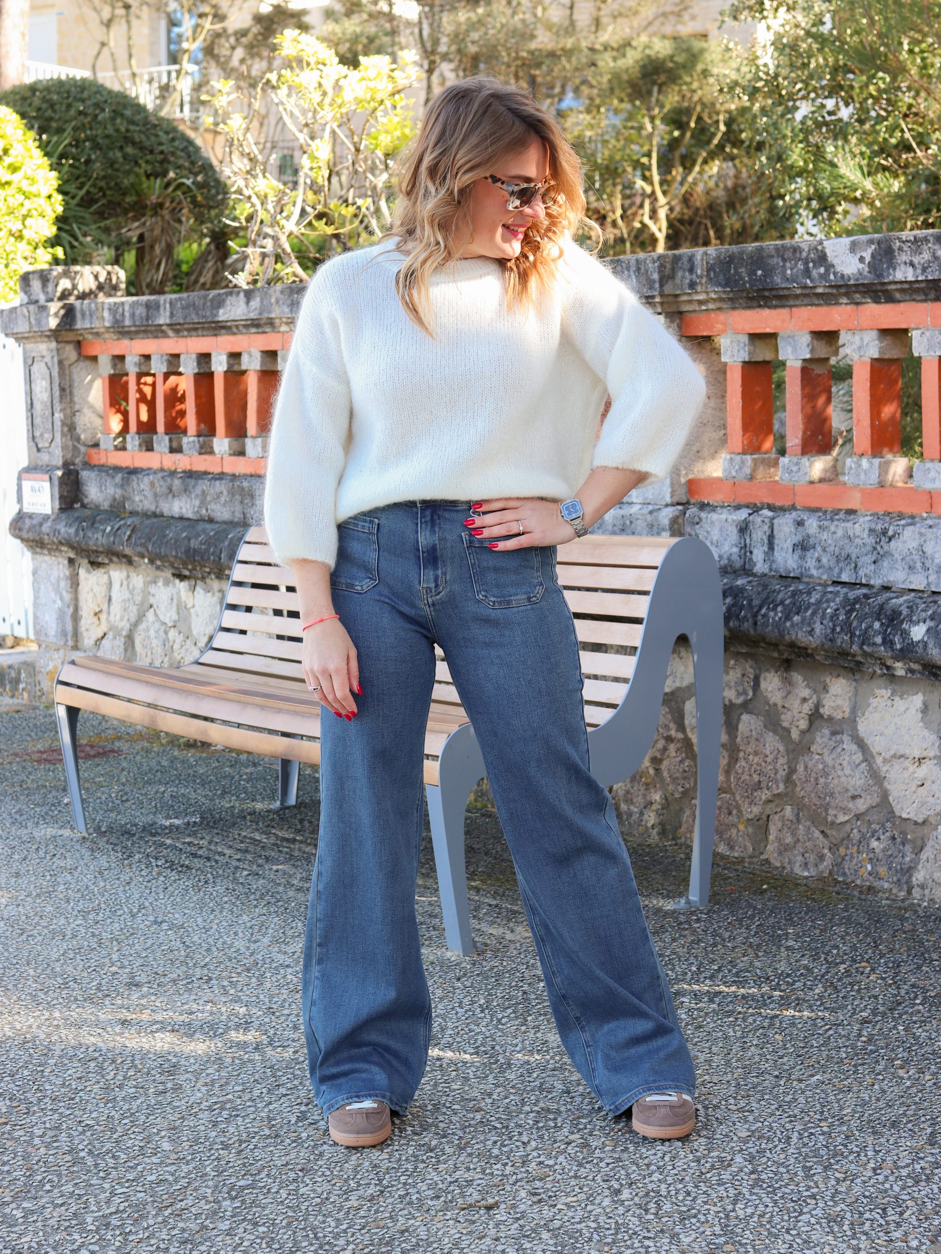 Aurélie porte une taille S en haut et fait un 36 en bas.