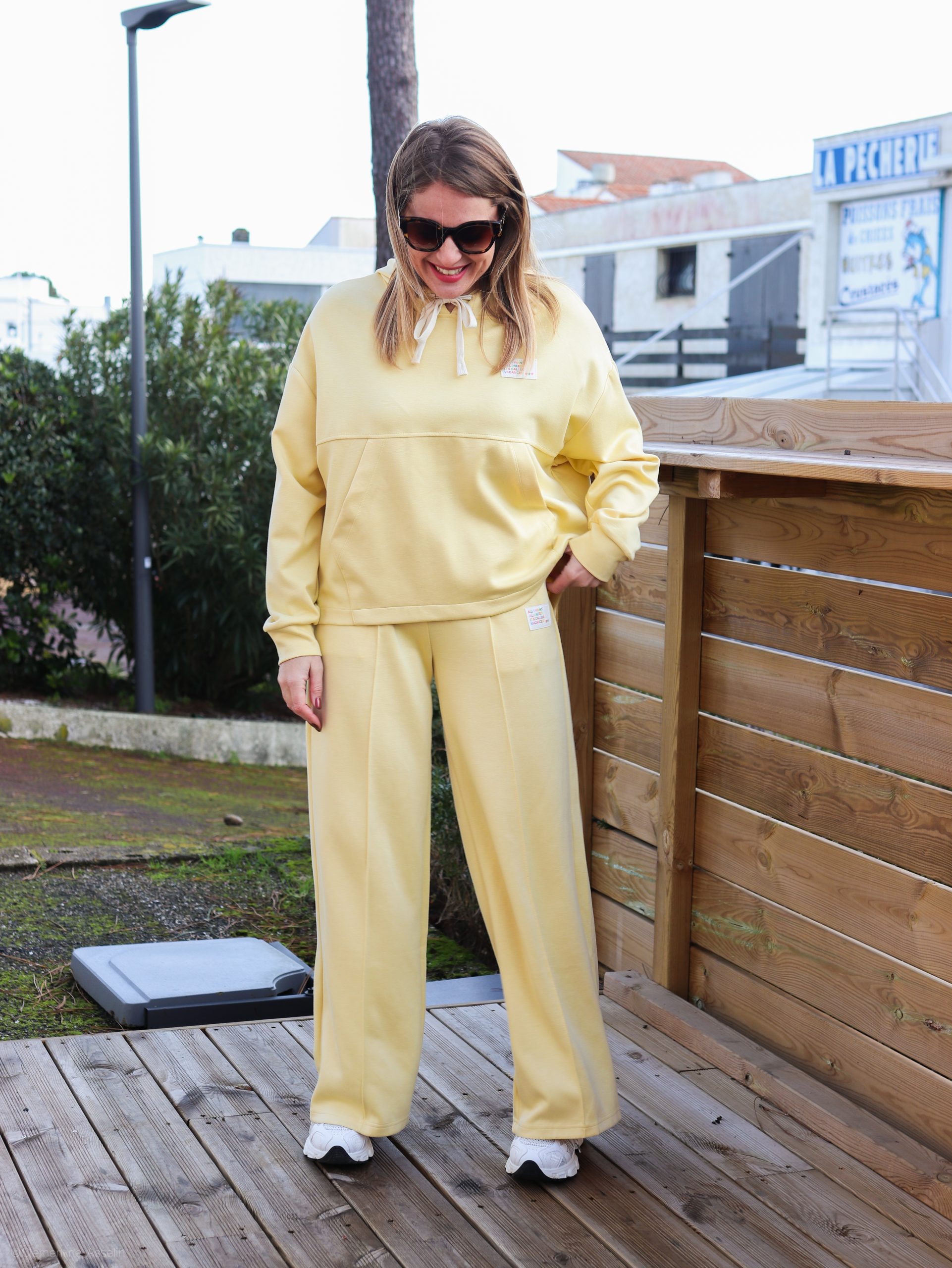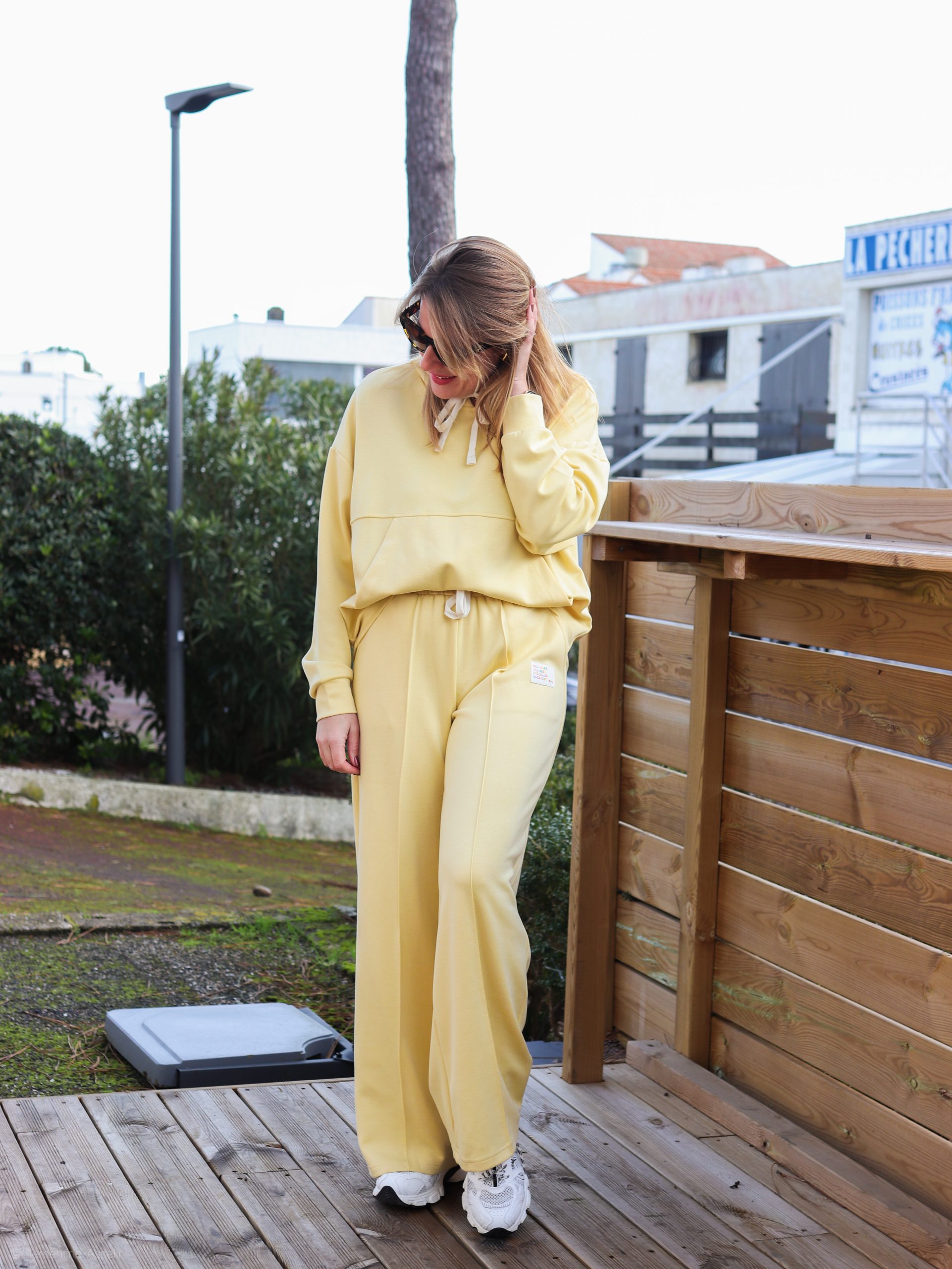 Craquez pour cet ensemble ultra confortable au look casual et tendance. Composé d’un sweat à la coupe loose et d’un jogging fluide, il est parfait pour un style décontracté tout en restant soigné. Sa teinte jaune pastel apporte une touche lumineuse et douce à votre dressing.