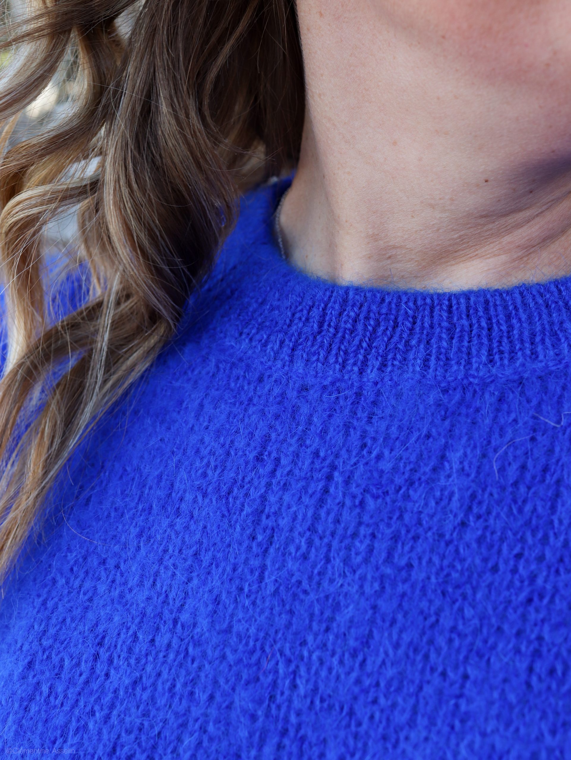 - 40% kid mohair (maille douce),30% acrylique, 20% polyamide, 10% laine.