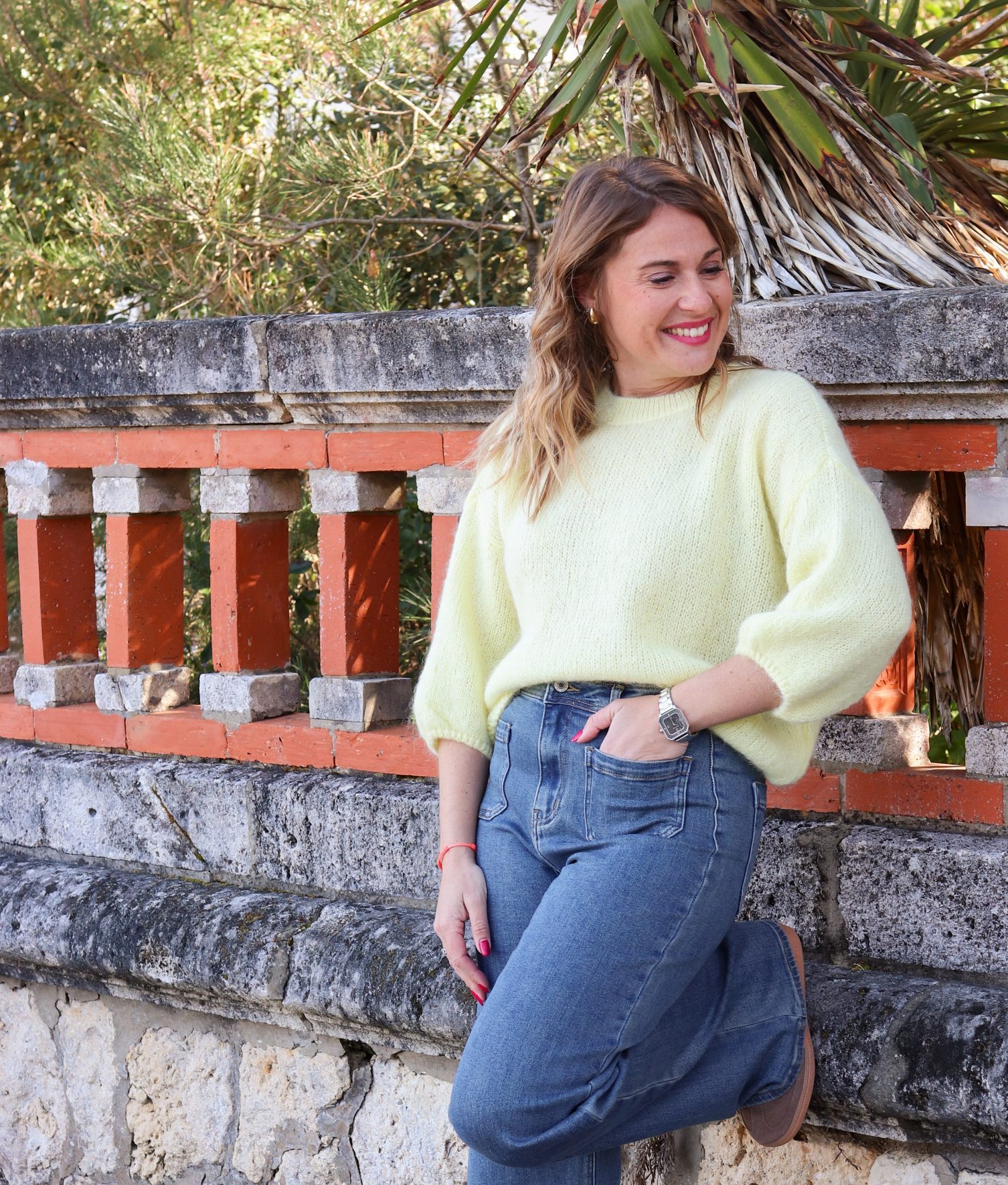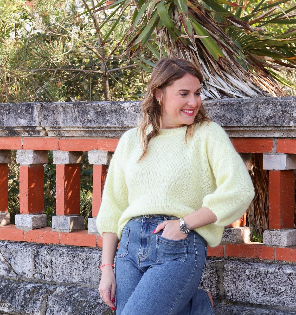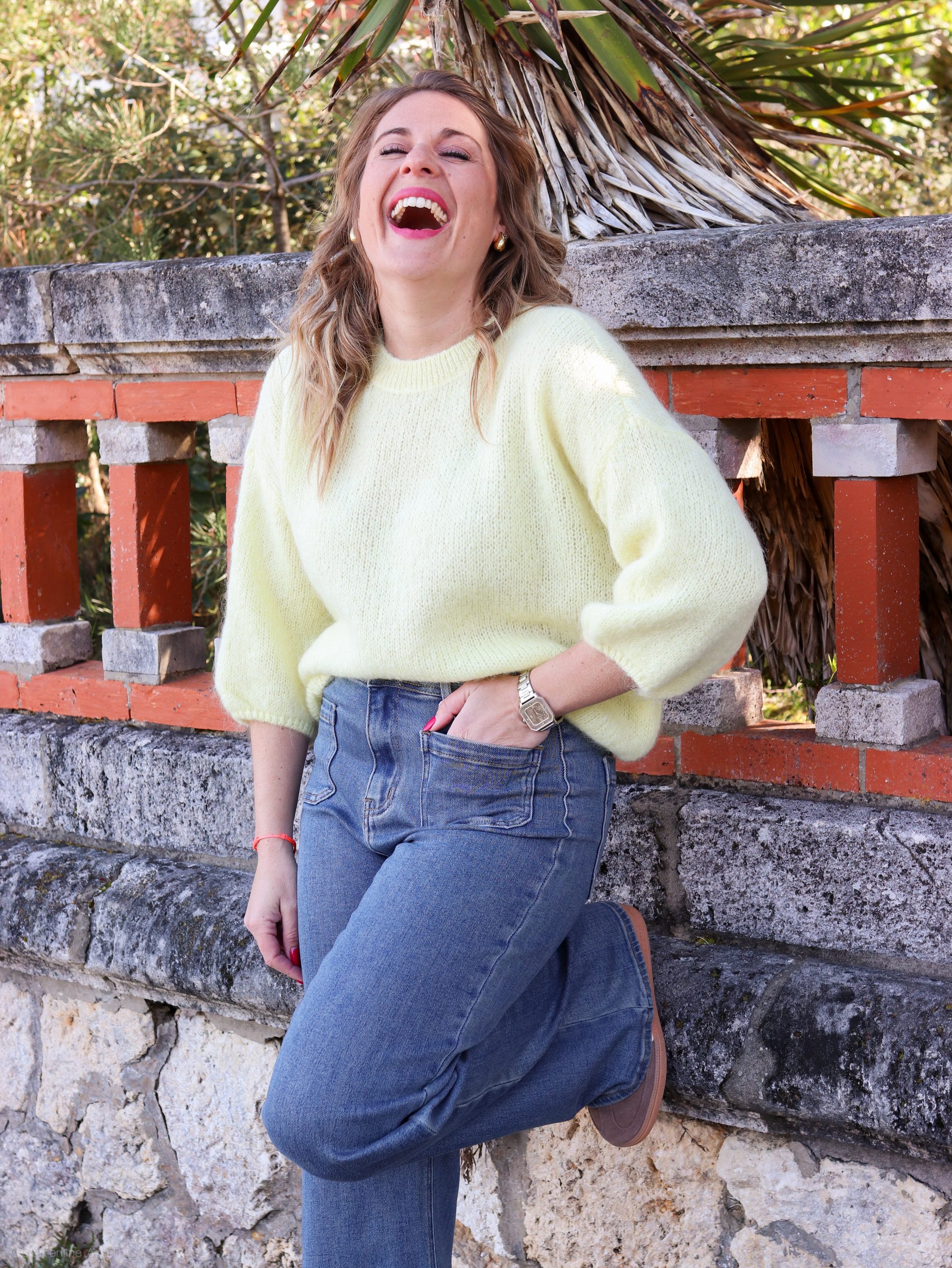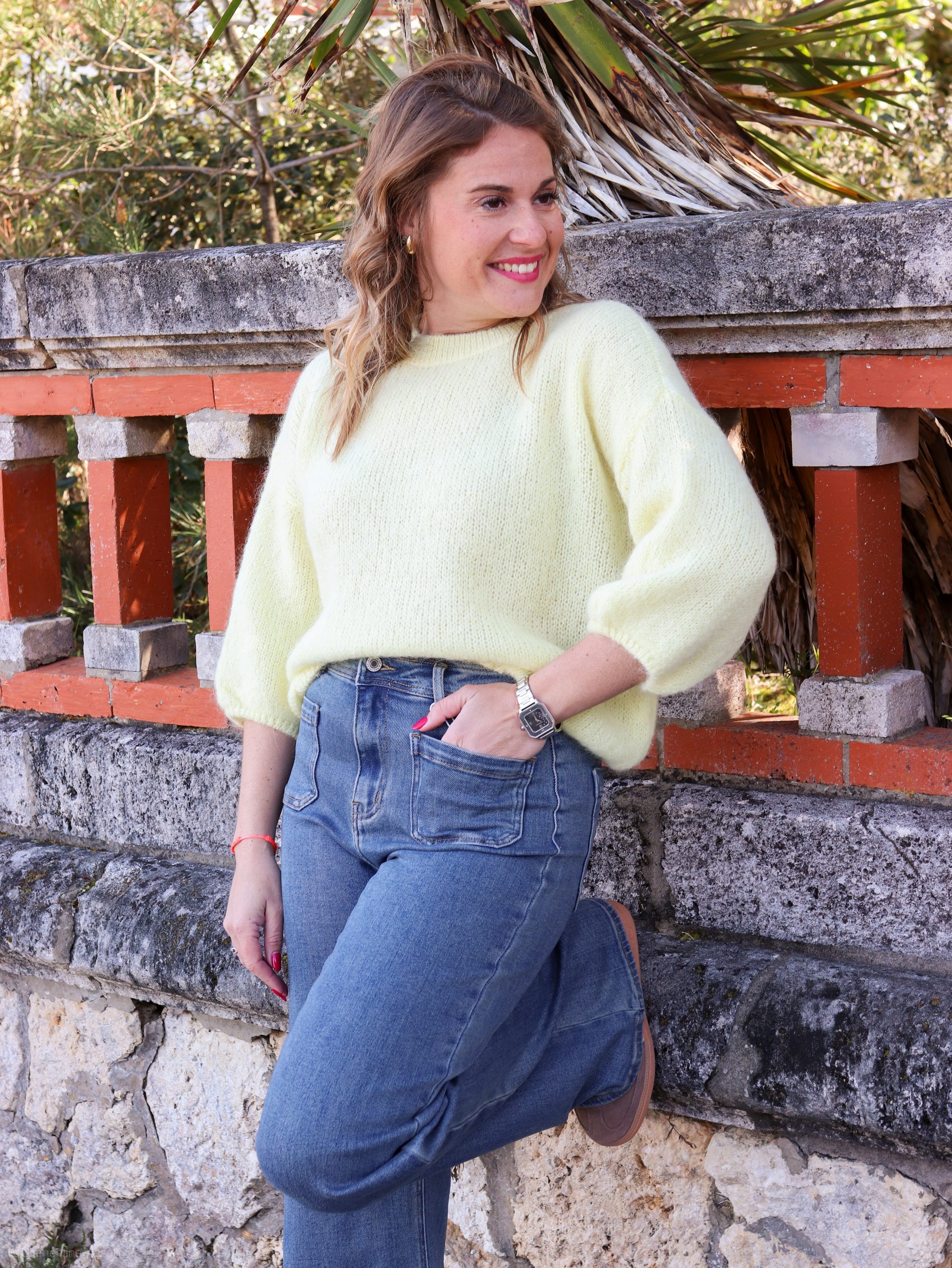 Aurélie fait une taille S en haut et 36 en bas.