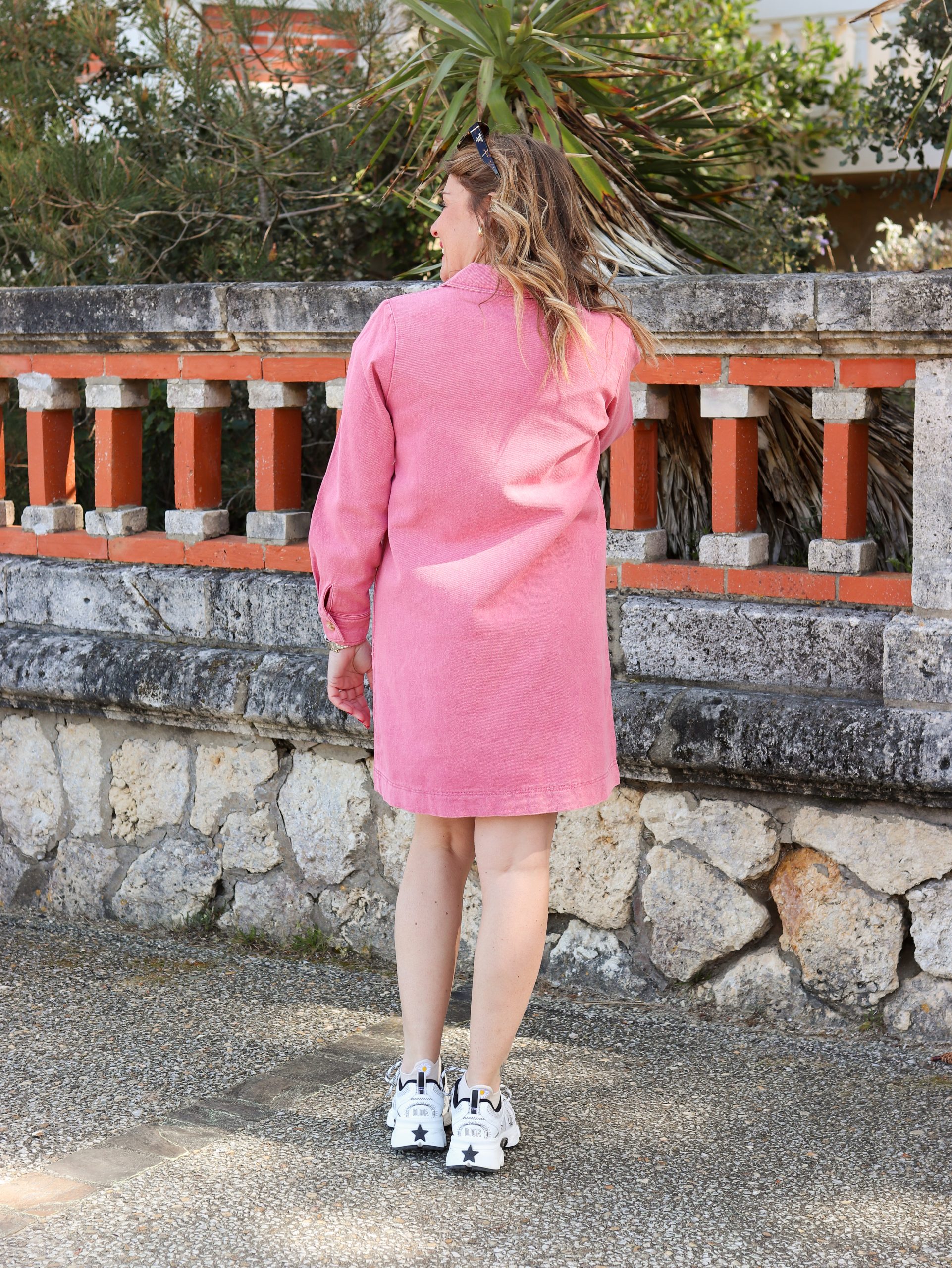 Craquez pour cette robe chemise au coloris rose, parfaite pour illuminer vos journées. Sa coupe droite et légèrement ample offre un confort absolu tout en restant ultra tendance.