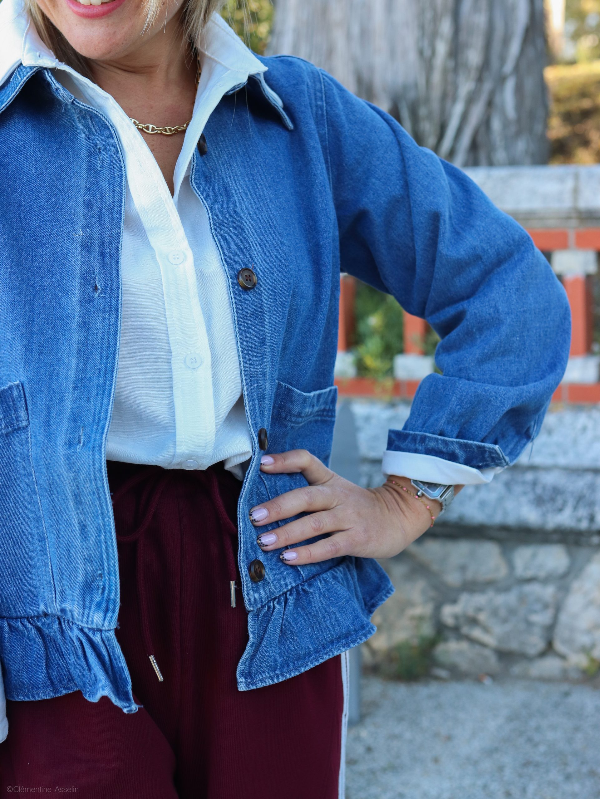 Craquez pour notre veste en jean revisitée avec son léger volant sur le bas, une touche féminine qui apporte douceur et originalité à cette pièce incontournable. À la fois tendance et facile à porter, elle sublime toutes vos tenues du quotidien.