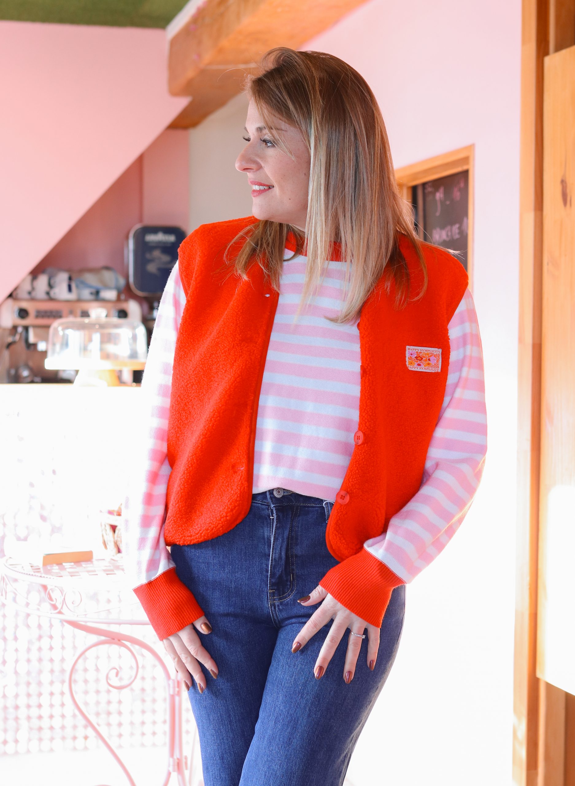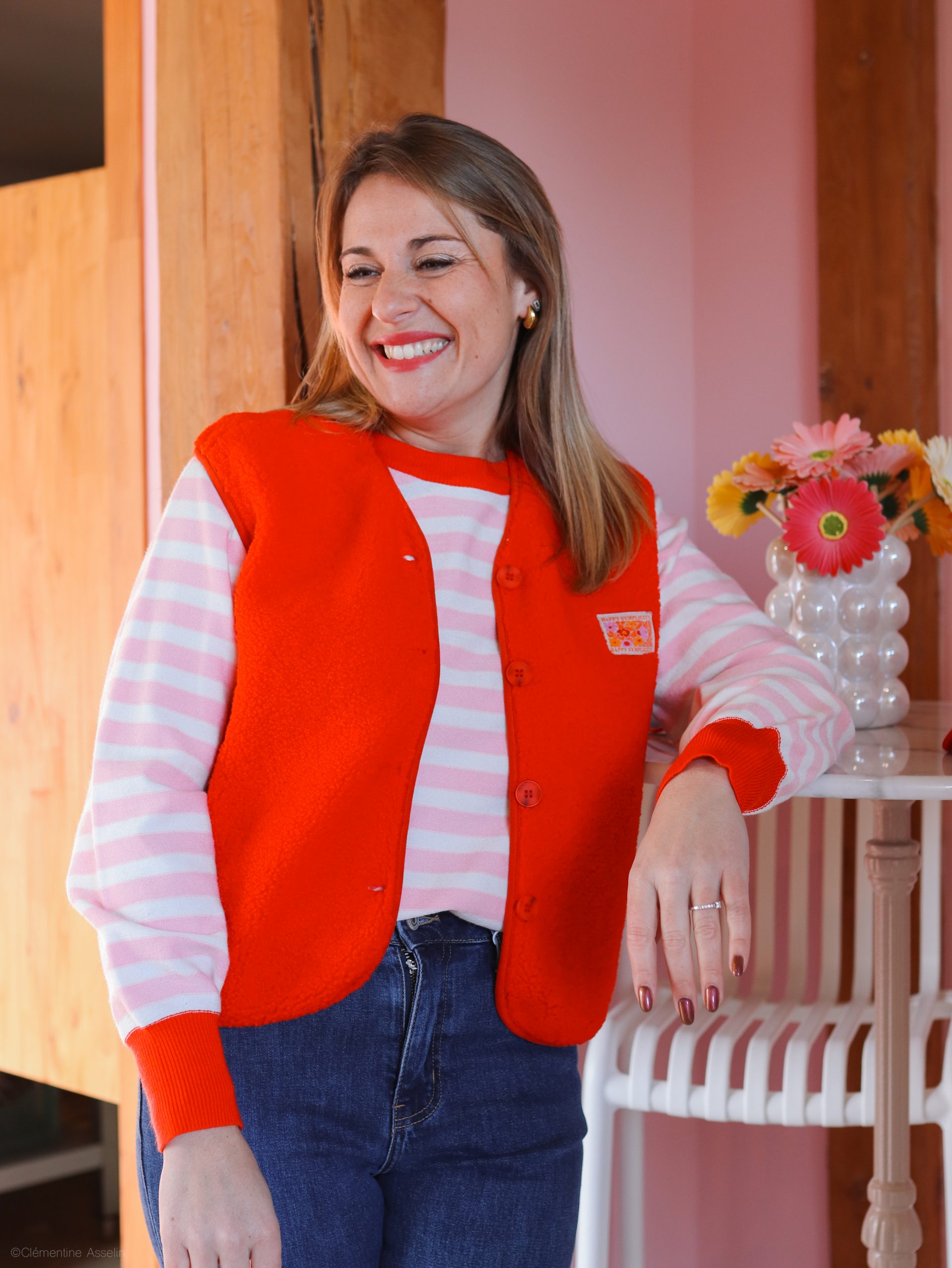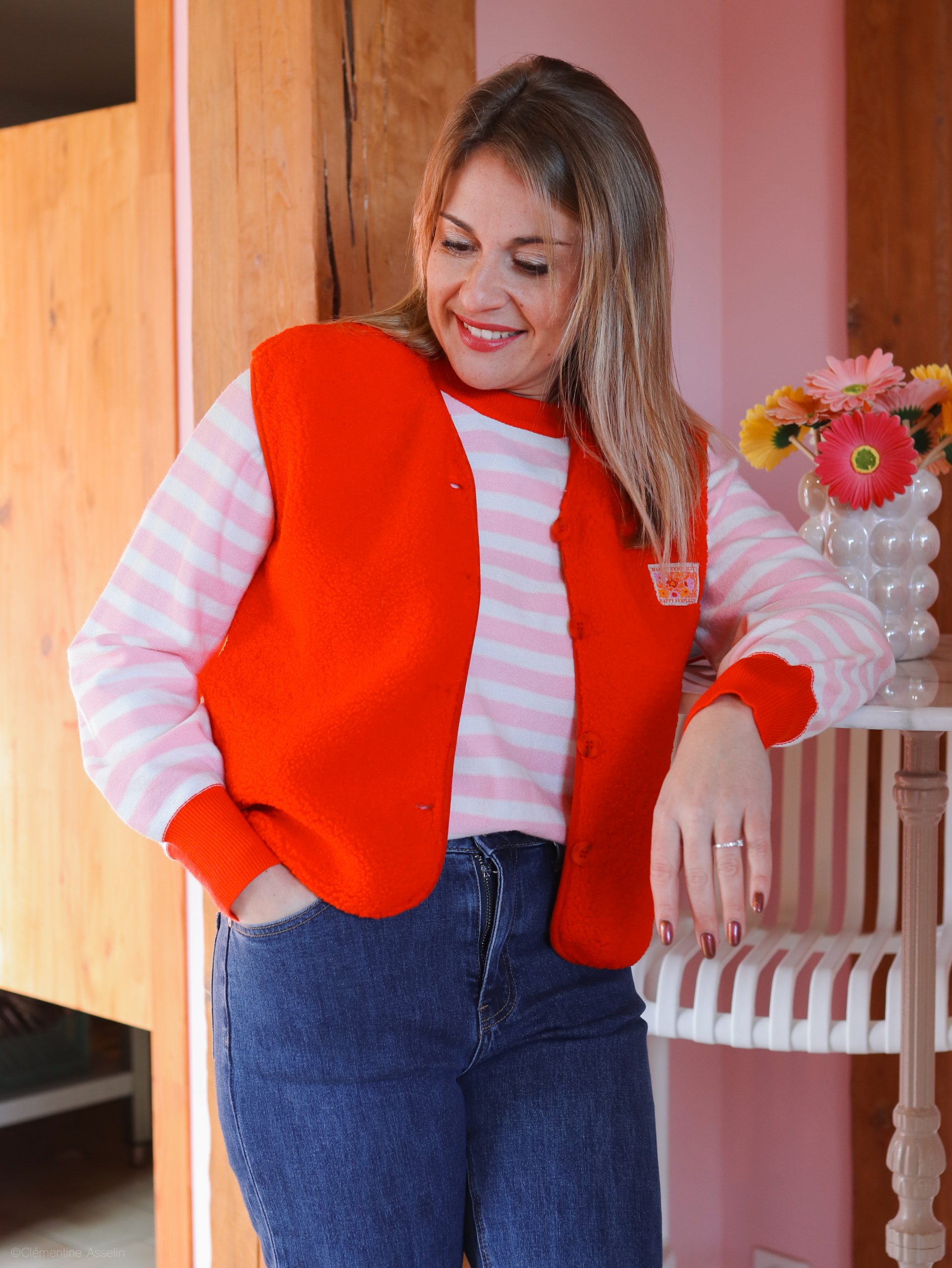 Craque pour cette veste sans manches rouge, une pièce coup de cœur pour apporter de la lumière à ta tenue.